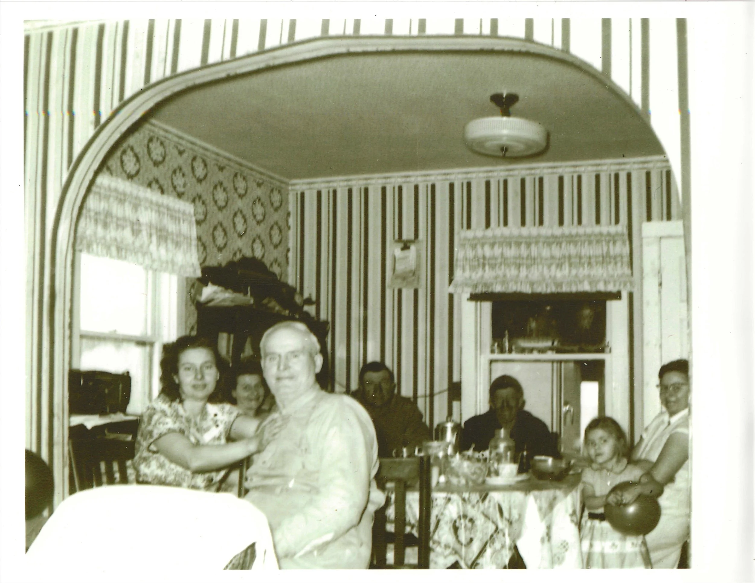 Eldon’s parents Edith and Louis Wiese in back center with their kids. Eldon is front right covering his face. Picture taken at their farm near Burwell, Nebraska, 1927.